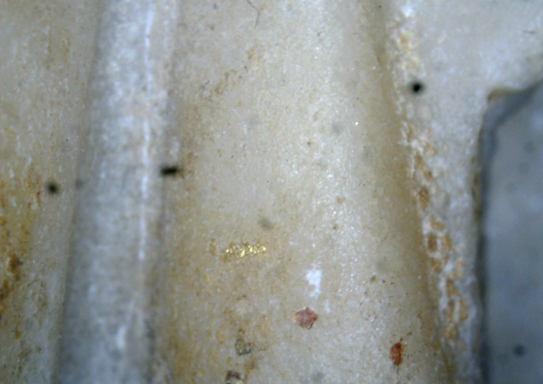 The portrait depicts Hadrian with his head turned to the left and is characterized by physiognomic features fully consistent with the emperor’s official iconography. The face is broad and full, with high cheekbones subtly framed by lightly incised nasolabial folds. The eyebrows are slightly contracted, arched, and rendered in relief. The eyes are small and elongated, with smooth, unarticulated eyeballs and deeply carved tear ducts. The nose has a broad, straight bridge, while the mouth is small, with the upper lip thinner and partially concealed by the moustache. The earlobes display the distinctive deep vertical groove regarded as a princely trait.