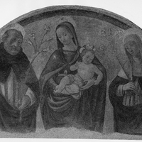 Maestro del Tondo Borghese, Madonna col Bambino, San Domenico e Santa Caterina da Siena