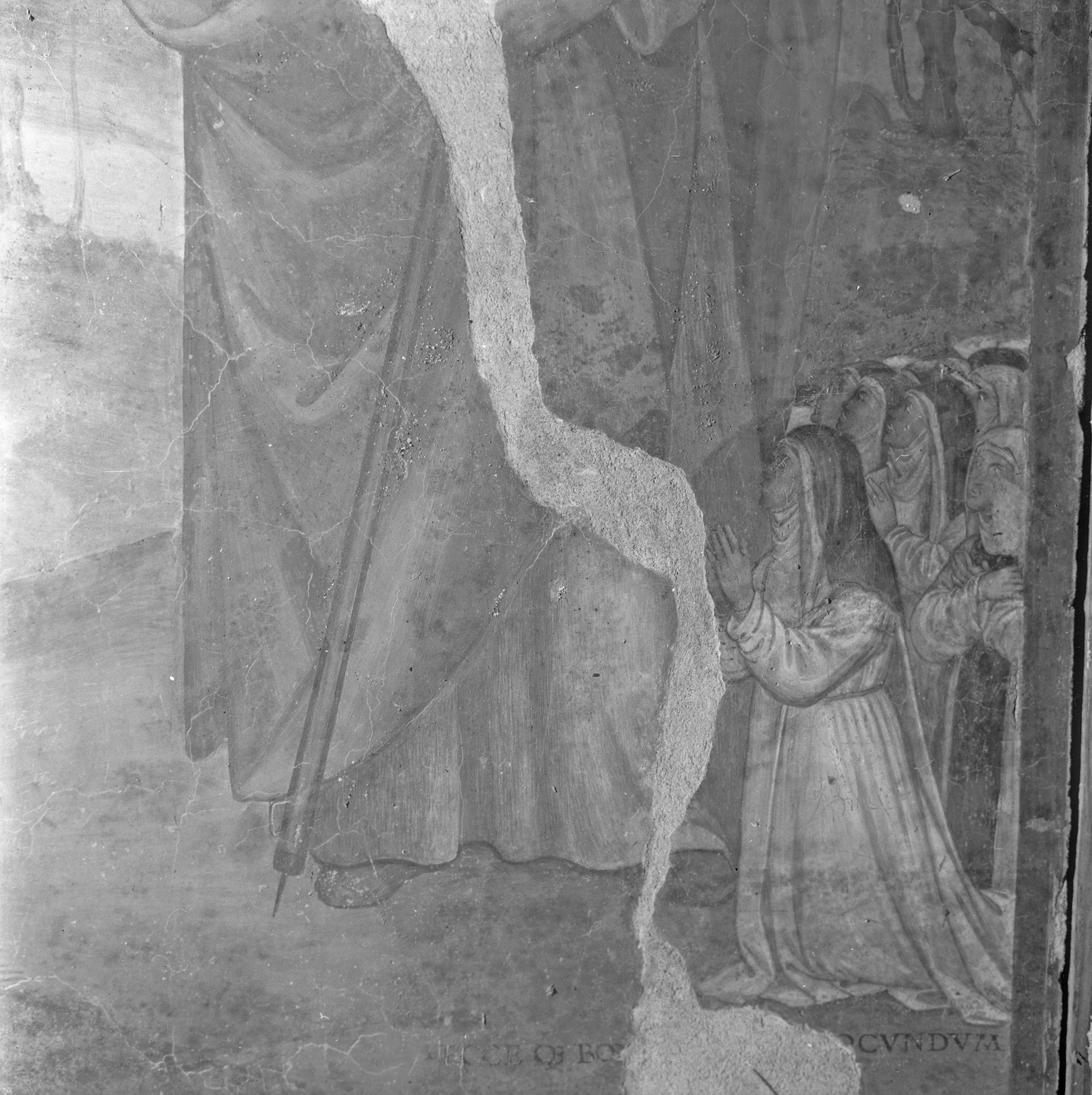 Questa fotografia documenta lo stato conservativo di un dettaglio della Crocifissione di Bartolomeo di Giovanni dopo che l'opera fu colpita dall'alluvione del 1966 - has current owner