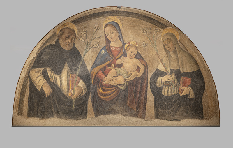 - Maestro del Tondo Borghese, Madonna col Bambino, San Domenico e Santa Caterina da Siena