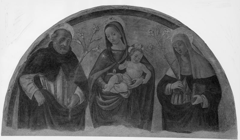- Maestro del Tondo Borghese, Madonna col Bambino, San Domenico e Santa Caterina da Siena