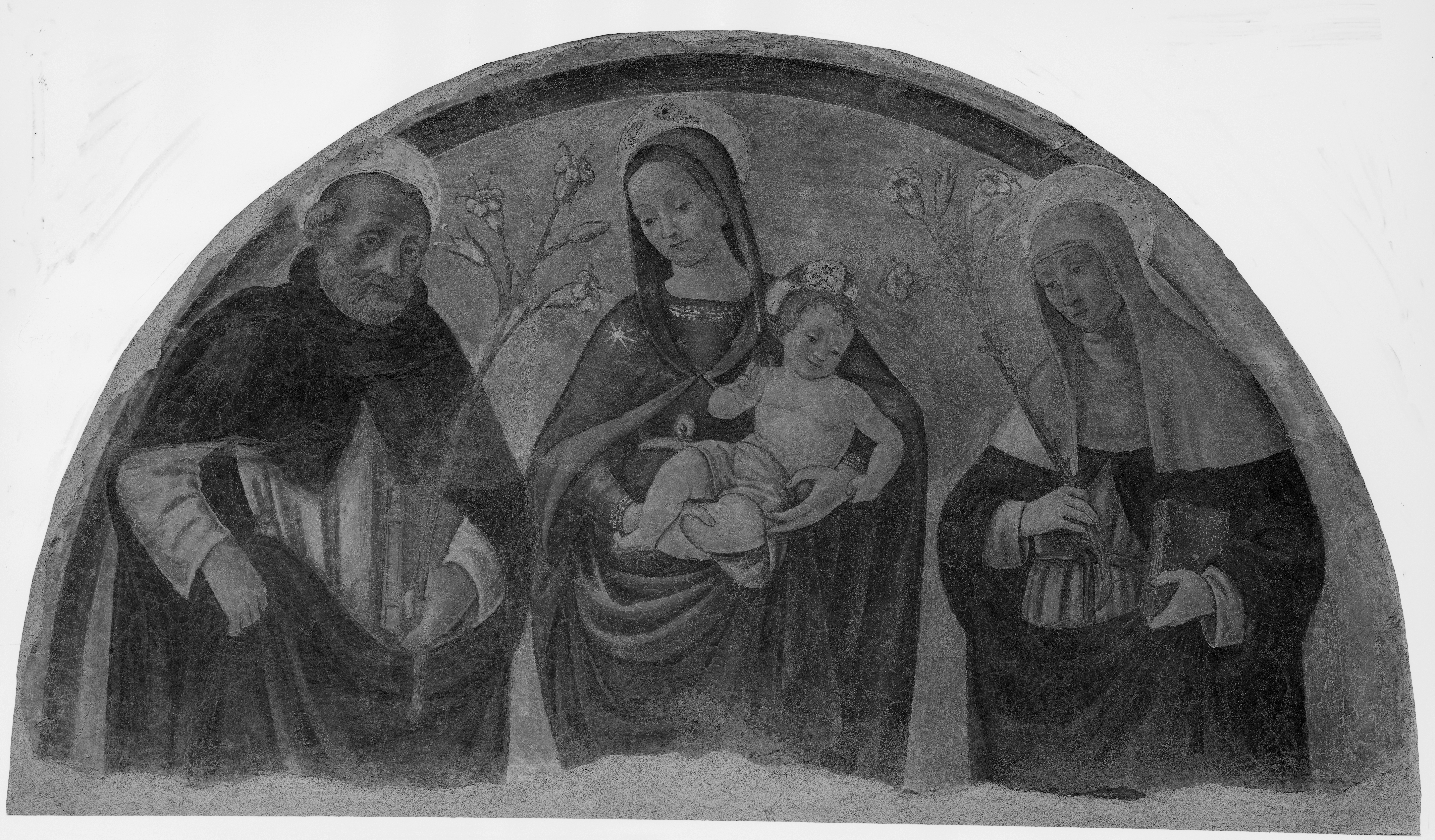Maestro del Tondo Borghese, Madonna col Bambino, San Domenico e Santa Caterina da Siena |
